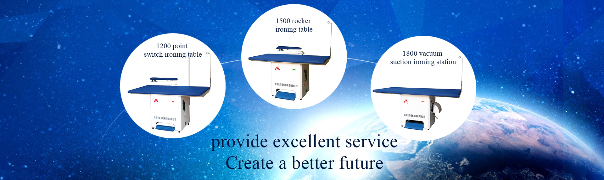 Qingdao Jinhuamao Machinery Manufacturing Co., Ltd. mainly produces vacuum suction ironing table, jog switch ironing table, rocker ironing table, bonding machine, suction head machine, electric heating steam generator and other clothing machinery.